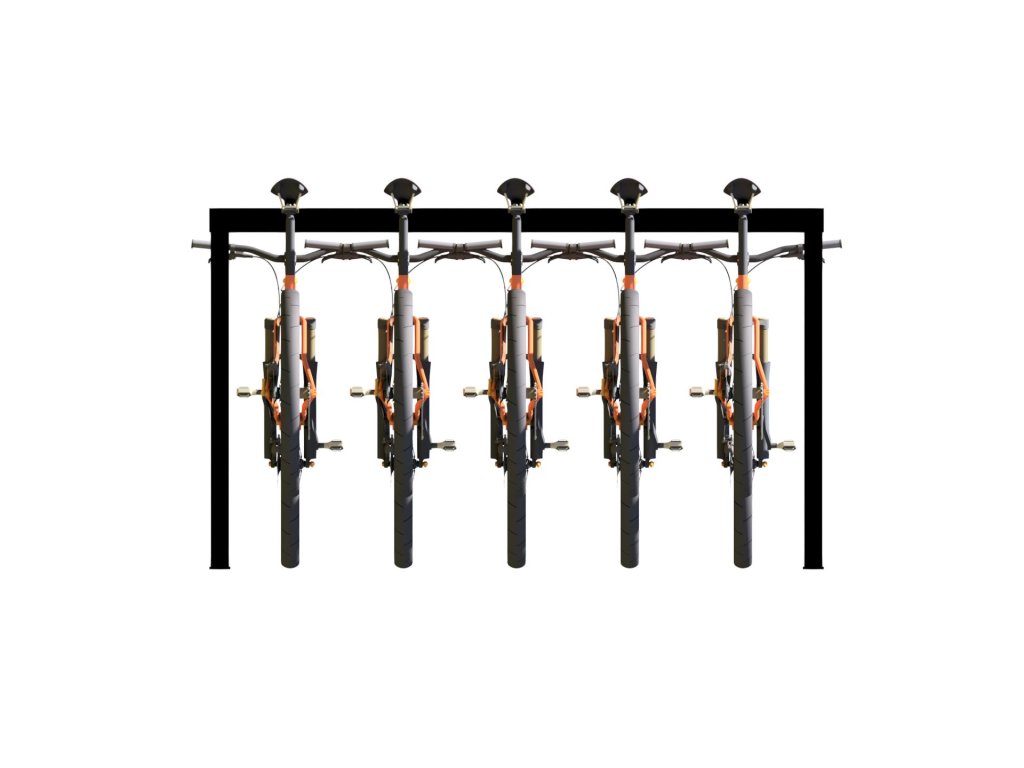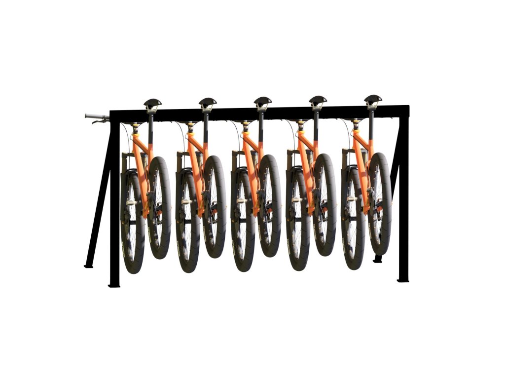Stojan slouží k zaparkování 5 kol sedlem za ocelový nosník